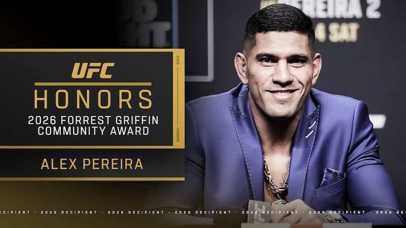 Las Vegas – UFC® today announced that former UFC middleweight and light heavyweight champion Alex Pereira has been named the 2026 recipient of the Forrest Griffin Community Award. Named in honor of UFC Hall of Famer Forrest Griffin, the award recognizes a UFC athlete for their exceptional volunteer and charity work and the meaningful impact their efforts have on the community.