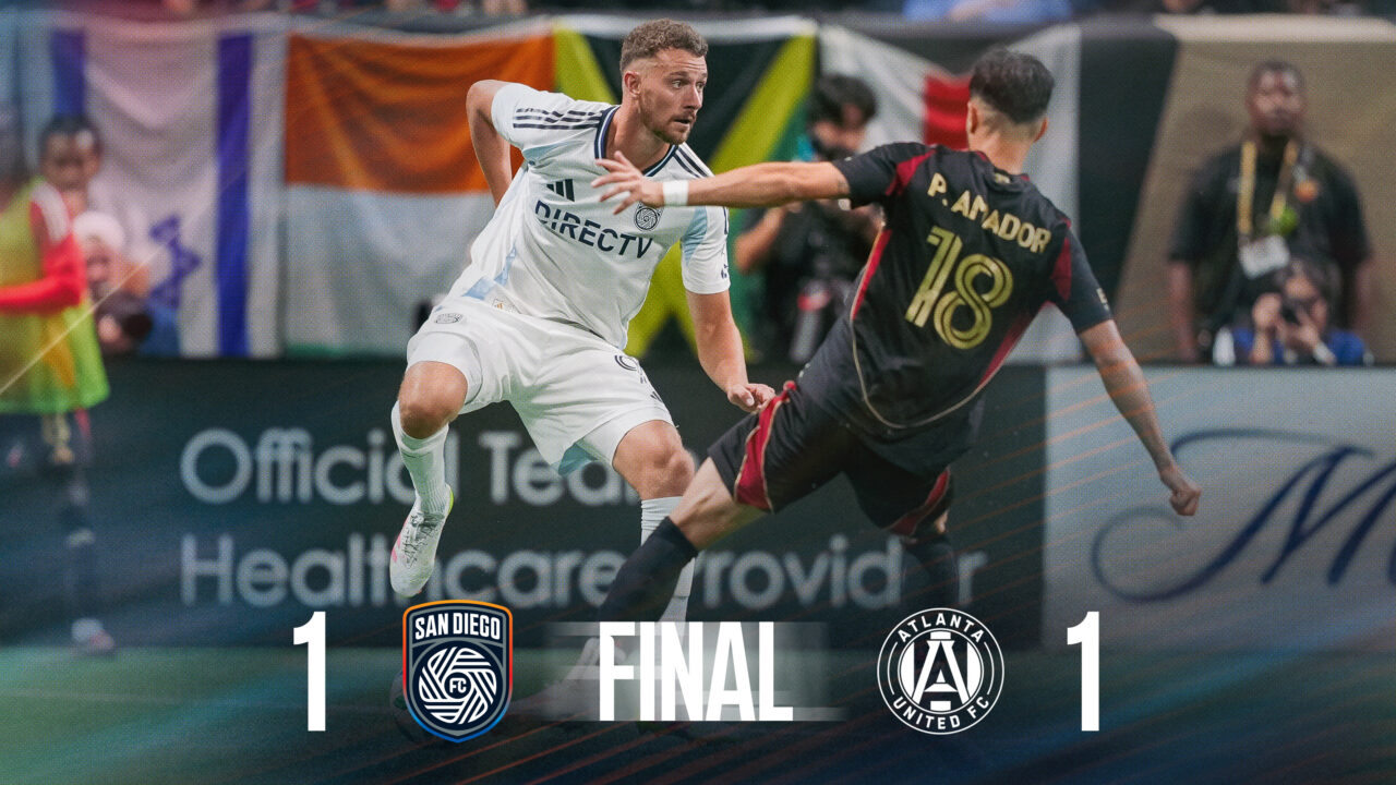 ATLANTA, GA. (Saturday, Sept. 20, 2025) – San Diego FC (17-8-6, 57 pts) battled to a 1-1 draw against Atlanta United (5-13-11, 27 pts) on Saturday night at Mercedes-Benz Stadium. With the result, SDFC remains atop the Western Conference standings and ties the MLS expansion single-season points record of 57, previously set by LAFC in 2018.