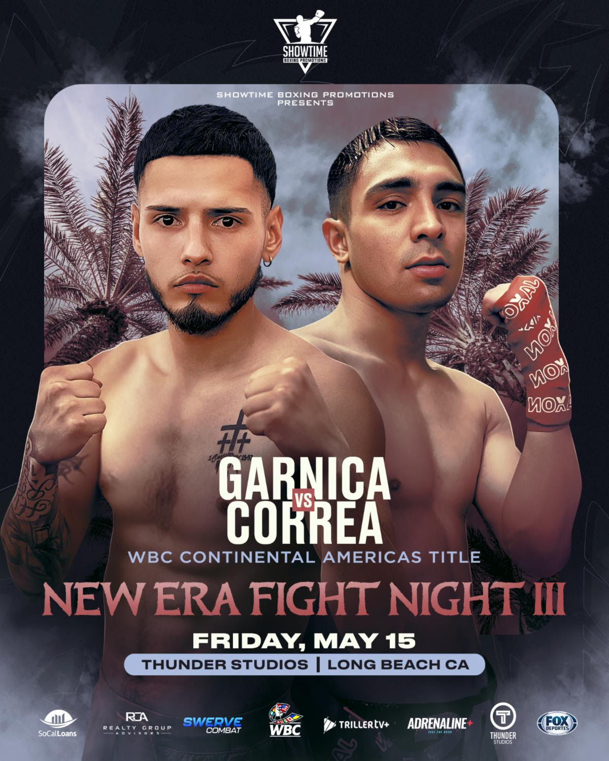 GARNICA VS. CORREA SET FOR WBC CONTINENTAL AMERICAS TITLE CLASH IN LONG BEACH MAY 15April 14, 2026 Long Beach, California — A high-stakes Northern California rivalry will take center stage on May 15, 2026, as undefeated Oakland native Anthony Garnica faces San Jose’s seasoned contender Eros Correa for the WBC Continental Americas Title at New Era Fight Night III, presented by Showtime Boxing Promotions. Taking place at Thunder Studios in Long Beach, California, the bout brings together two of NorCal’s top fighters in a pivotal clash with major implications for the bantamweight division. The event will be televised live on FOX Deportes, bringing the action to a national audience. Anthony Garnica (13-0, 8 KOs), the 25-year-old rising star from Oakland, has rapidly built a reputation as one of boxing’s most promising young prospects. With an aggressive yet composed style, Garnica now faces the toughest test of his career as he looks to claim his first major title and represent Oakland on a national stage. “Fans can expect an action-packed fight,” said Garnica. “Eros is coming in hungry to revamp his career, and I respect the tough opponents he’s faced. I’ve followed his journey closely, and I’m excited to step in the ring with someone of his caliber. At the end of the day, it’s going to come down to styles—and mine will prevail.” Standing across the ring is Eros Correa (15-2, 9 KOs), the 33-year-old veteran originally from San Jose, now fighting out of Las Vegas, Nevada. Correa brings experience, grit, and a renewed sense of purpose as he looks to defend NorCal pride while reestablishing himself among boxing’s elite. Correa enters the fight following a closely contested decision loss to Michael Angeletti in June 2025 and a brief injury setback earlier that year. Now fully healthy, he has revamped his training camp under renowned coach Richard Barrientes, sharpening his tools for what he views as a career-defining opportunity. “I’m excited to get back into the ring, and I know this title will get me back in the rankings where I belong,” said Correa. “I’ve been working with my new trainer and I’ve elevated my skillset. I’m ready to show that on May 15.” Once ranked as high as No. 5 in the world by the WBA, Correa’s experience and resilience contrast with Garnica’s youth and undefeated momentum, setting the stage for a compelling youth vs. experience showdown fueled by regional pride. The stakes are significant, as the winner is expected to break into the Top 20 rankings of the WBC, positioning themselves for a potential world title opportunity. With both fighters at critical junctures—Garnica on the rise and Correa seeking redemption—this matchup is expected to deliver fireworks in the 118-pound division. The undercard will feature promising rising talents Andy Dominguez Velasquez and Criztec Bazaldua, both of whom continue to build momentum early in their professional careers. Known for their aggressive styles and fan-friendly performances, both fighters are expected to add excitement to an already stacked card, with opponents to be announced in the coming weeks. Event Details: Event: New Era Fight Night III Date: May 15, 2026 Location: Thunder Studios, Long Beach, California Promotion: Showtime Boxing Promotions Broadcast: FOX Deportes Title on the Line: WBC Continental Americas Championship Tickets: |
