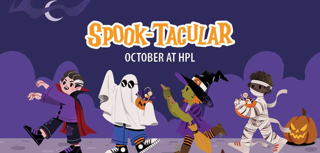 Spook-tacular Fall Fun: Family-friendly Halloween parties featuring crafting, games and prizes, and other activities taking place at ten different HPL locations from Monday, October 27 through Friday, October 31. Costumes are encouraged, with some locations holding costume contests.