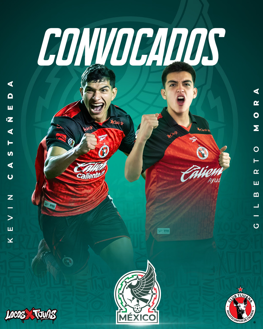 Tijuana, Baja California, 15 de Enero del 2025._ Los jugadores del Club Tijuana, Kevin Castañeda y Gilberto Mora, fueron convocados a la Selección Mexicana para esta fecha FIFA del mes de Enero; donde se medirán a su similar de Panamá y Bolivia.