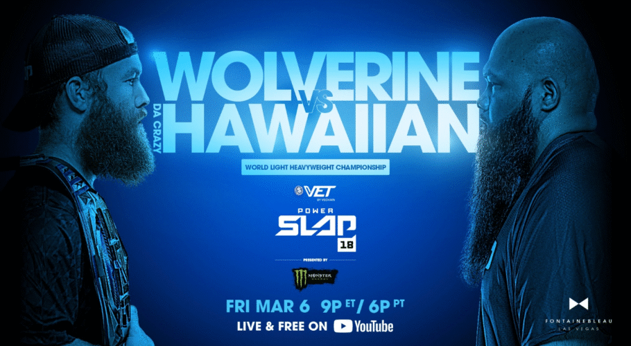 FONTAINEBLEAU LAS VEGAS TO HOST VECHAIN POWER SLAP 18: WOLVERINE VS. DA CRAZY HAWAIIAN PRESENTED BY MONSTER ENERGY STREAMING LIVE AND FREE TO A GLOBAL AUDIENCE ON YOUTUBE ON FRIDAY MARCH 6 VIP and General Admission tickets on sale…