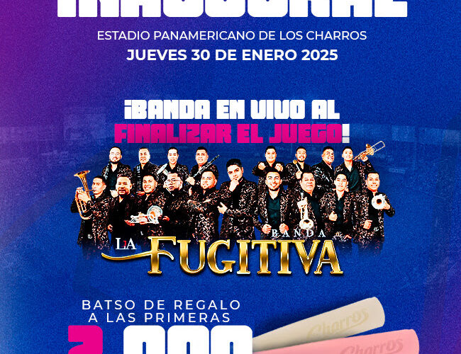 Este 30 de enero, ven al Estadio Panamericano y vive el Juego Inaugural de Charros Softbol Femenil. Banda La Fugitiva en vivo al final del juego Batso de regalo a los primeros 2,000 aficionados Show Inaugural 7:15 pm Adquiere tus boletos…