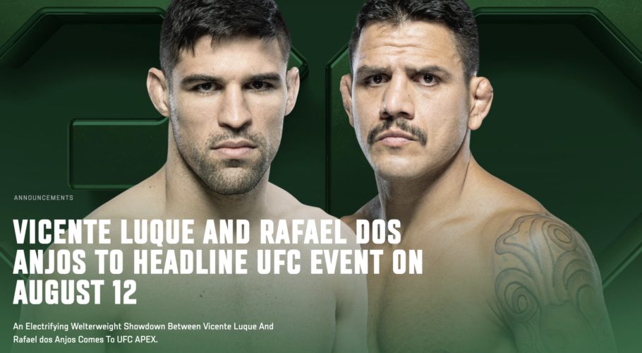 ELECTRIFYING WELTERWEIGHT SHOWDOWN BETWEEN (#10) VICENTE LUQUE AND (#5 – LW) RAFAEL DOS ANJOS HEADLINES AT UFC® APEX FEATURED BOUT: CUB SWANSON vs HAKEEM DAWODU Las Vegas – UFC® returns to UFC APEX with an electrifying welterweight showdown as No. 10 ranked…