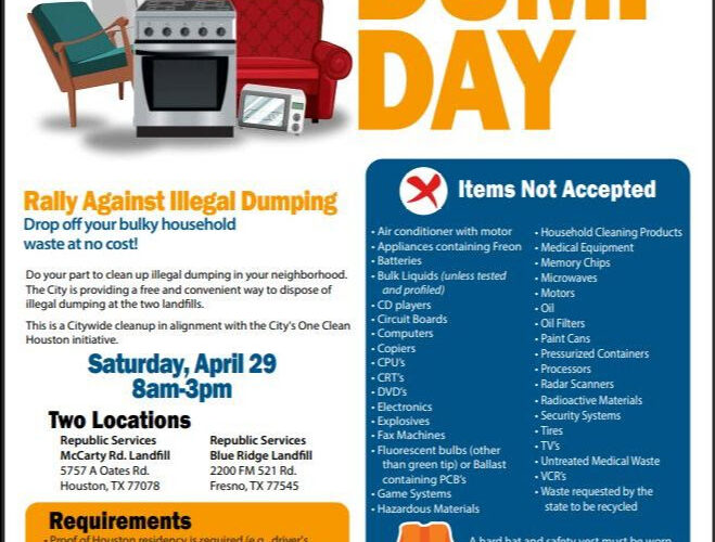 City of Houston Solid Waste Management and Mayor Turner Announce One Clean Houston Dump Day to Alleviate Illegal Dumping Houston, TX – April 25, 2023 – The City of Houston’s Solid Waste Management Department is proud to announce its first annual…