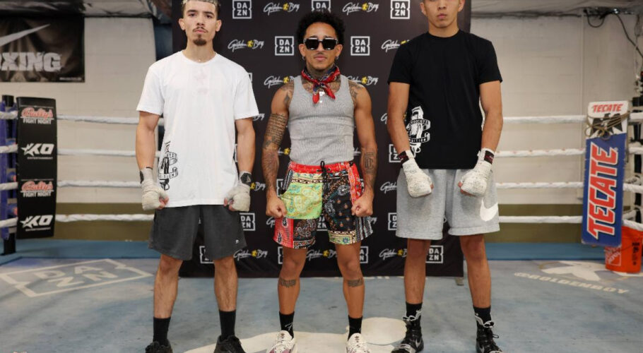 UNDERCARD SET FOR “SCRAPPY” VS. PADILLA FOR FEB. 23 GOLDEN BOY FIGHT NIGHT ON DAZN SHOW GOLDEN BOY RETURNS TO FANTASY SPRINGS RESORT CASINO LIMITED TICKETS STILL AVAILABLE! Above, L-R: Manny «Gucci» Flores, John «Scrappy» Ramirez, and Grant Flores at their media…