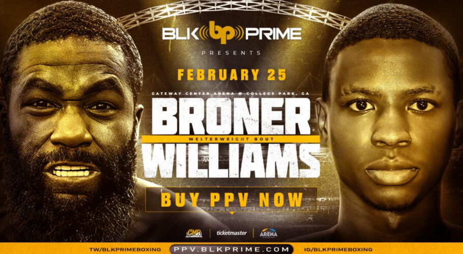 Broner vs. Williams Jr. February 25 in Atlanta on BLK Prime PPV Tickets Go On Sale Today Friday, January 27 at 12:00 p.m. ET / 9:00 a.m. PT ORDER TICKETS HERE ORDER PPV HERE ATLANTA, GA (January 26, 2023) – BLK…