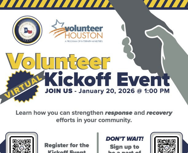 Join Us for the «Ready to Serve» Virtual Volunteer Kickoff Event Tuesday, Jan. 20 at 1:00 pm Recovering after an emergency takes our whole community working together. Harris County needs you to volunteer! The Harris County Office of Homeland Security…