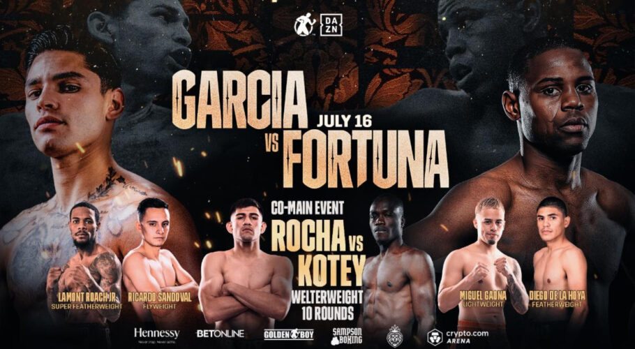 ORANGE COUNTY’S ALEXIS ROCHA TO FACE SAMUEL KOTEY AS THE CO-MAIN EVENT FOR GARCIA VS. FORTUNA LAMONT ROACH JR. TAKES ON ANGEL RODRIGUEZ FOR THE WBA SUPER FEATHERWEIGHT TITLE ELIMINATOR SATURDAY, JULY 16 FROM THE CYPTO.COM ARENA STREAMING EXCLUSIVE ON DAZN Tickets…