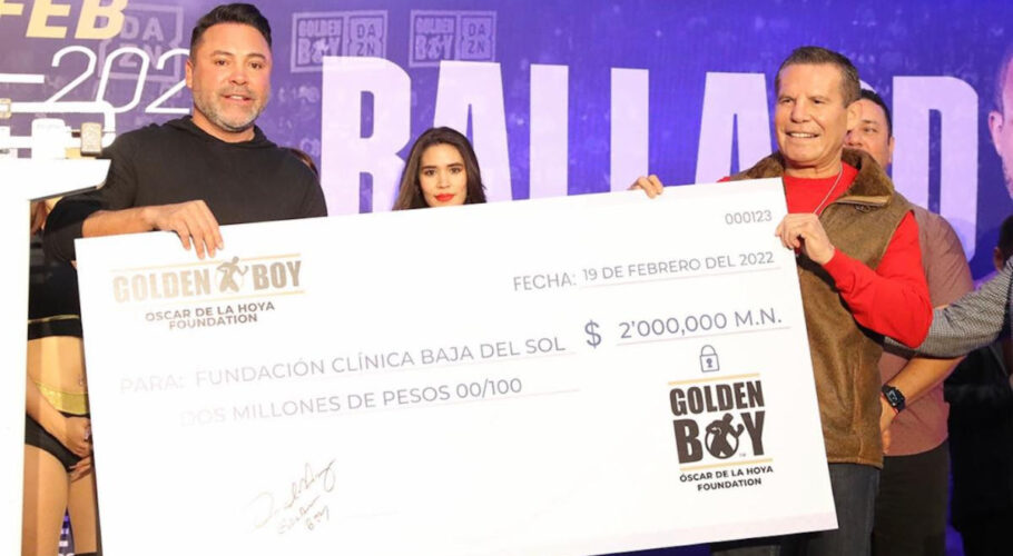 OSCAR DE LA HOYA MAKES A $2,000,000 MXN DONATION TO THE JULIO CESAR CHAVEZ FOUNDATION THE FOUNDATION HELPS THE UNDERPRIVILEGED WITH SUBSTANCE ABUSE PREVENTION AND TREATMENT Photos Mandatory Photo Credit: Tom Hogan/Golden Boy TIJUANA, B.C., MEXICO (February 18, 2022) –…