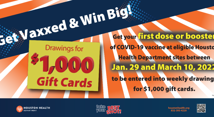 Houston Health Department awarding 12 people $1,000 gift cards through new COVID-19 vaccination incentive program Hundreds of additional people to get chance at $50 gift cards HOUSTON – The Houston Health Department is launching a new program to encourage more Houstonians to get…