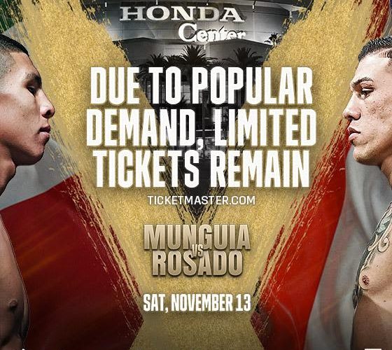 MUNGUIA VS. ROSADO SET TO FACE-OFF IN MIDDLEWEIGHT BATTLE IN A NEW CHAPTER OF THE HISTORIC MEXICO VS. PUERTO RICO RIVALRY Saturday, November 13 at Honda Center in Anaheim, CA Limited Tickets Still Available! Tickets on Sale Now!! HOLLYWOOD, CA…
