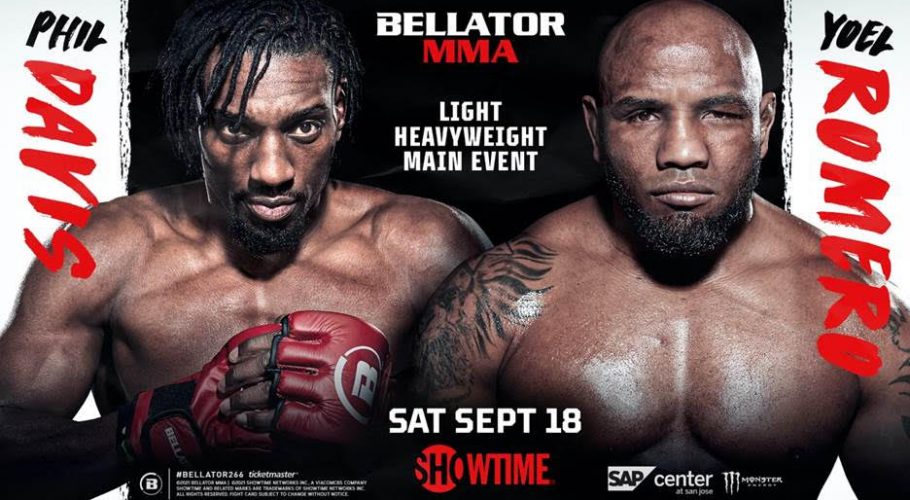 EL EX CAMPEÓN DEL PESO SEMI PESADO PHIL DAVIS DESAFÍA AL CUBANO MEDALLISTA DE PLATA OLÍMPICO YOEL ROMERO EN EL EVENTO PRINCIPAL DE BELLATOR MMA 266 DENTRO DE LA JAULA DEL SAP CENTER EN SAN JOSÉ EL SÁBADO, 18 DE SEPTIEMBRE …