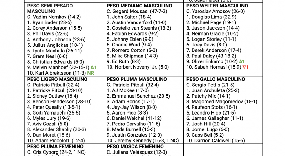 RANKINGS OFICIALES ACTUALIZADOS DE BELLATOR MMA™ TYRELL FORTUNE SIGUE ASCENDIENDO EN LOS RANKINGS DEL PESO PESADO TRAS UNA GRAN VICTORIA, MIENTRAS QUE DIANA AVSARAGOVA DEBUTA EN EL TOP TEN TRAS UNA NOTABLE ACTUACIÓN LOS ÁNGELES – BELLATOR MMA regresa…