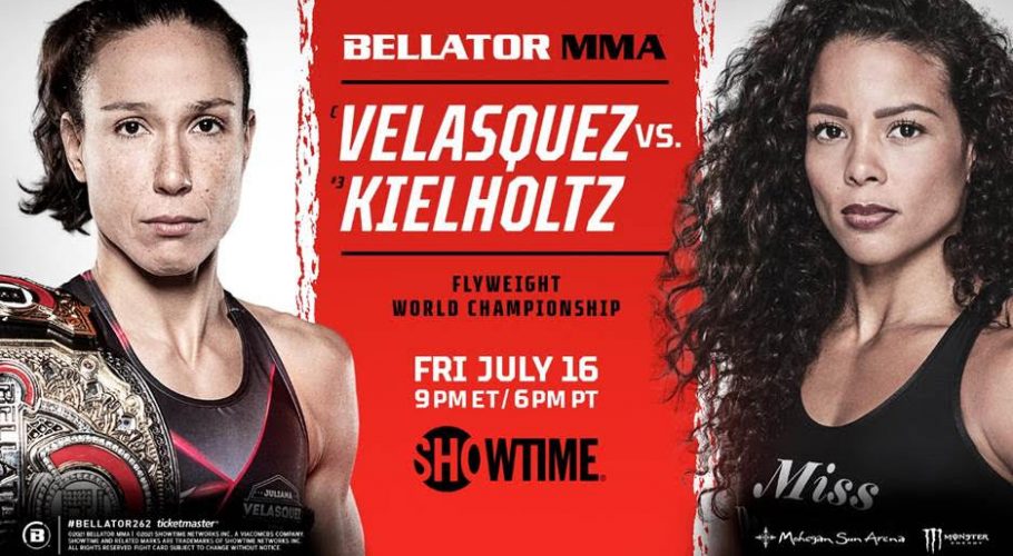 BELLATOR MMA CONFIRMA VARIAS PELEAS NUEVAS PARA BELLATOR MMA 262 – EN VIVO POR SHOWTIME® EL VIERNES, 16 DE JULIO A LAS 9 P.M. ET LA CAMPEONA INVICTA DEL PESO MOSCA JULIANA VELASQUEZ Y LA NO. 3 DEL RANKING DENISE KIELHOLTZ…