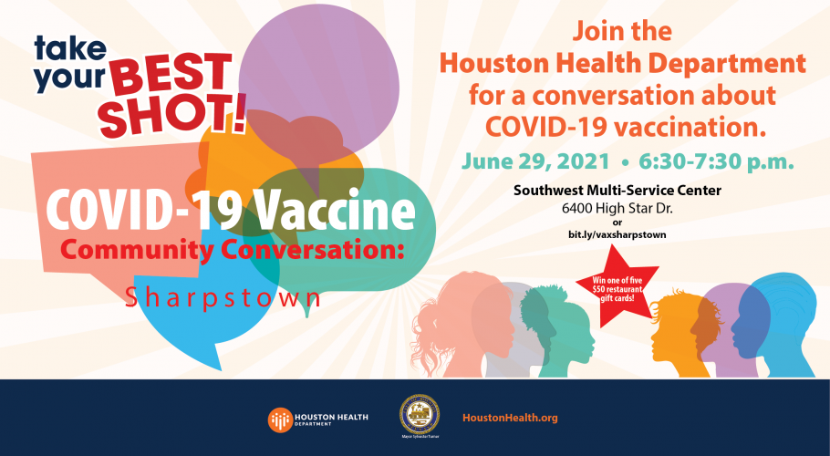 HOUSTON HEALTH DEPARTMENT HOSTING COVID-19 VACCINE TOWN HALL IN SHARPSTOWN HOUSTON – The Sharpstown community is invited to bring questions about the COVID-19 vaccine to an upcoming town hall meeting hosted by the Houston Health Department. Take Your Best Shot: COVID-19…