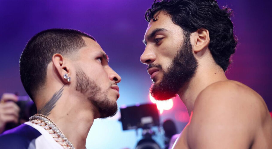 RING III WEIGHTS BERLANGA VS. SHEERAZ / STEVENSON VS. ZEPEDA DOUBLEHEADER PHOTOS Photo credit: Cris Esqueda / Golden Boy CLICK HERE TO REWATCH THE WEIGH-IN CLICK HERE FOR PDF BOUT SHEET # # #