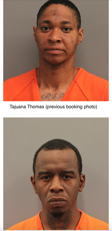 Tajuana Thomas, 38, and Richard Mouton, 34, who both sustained gunshot wounds, are charged with capital murder in the 183rd Criminal District Court. Previous booking photos of Thomas and Mouton, who remain hospitalized, are attached to this news release.