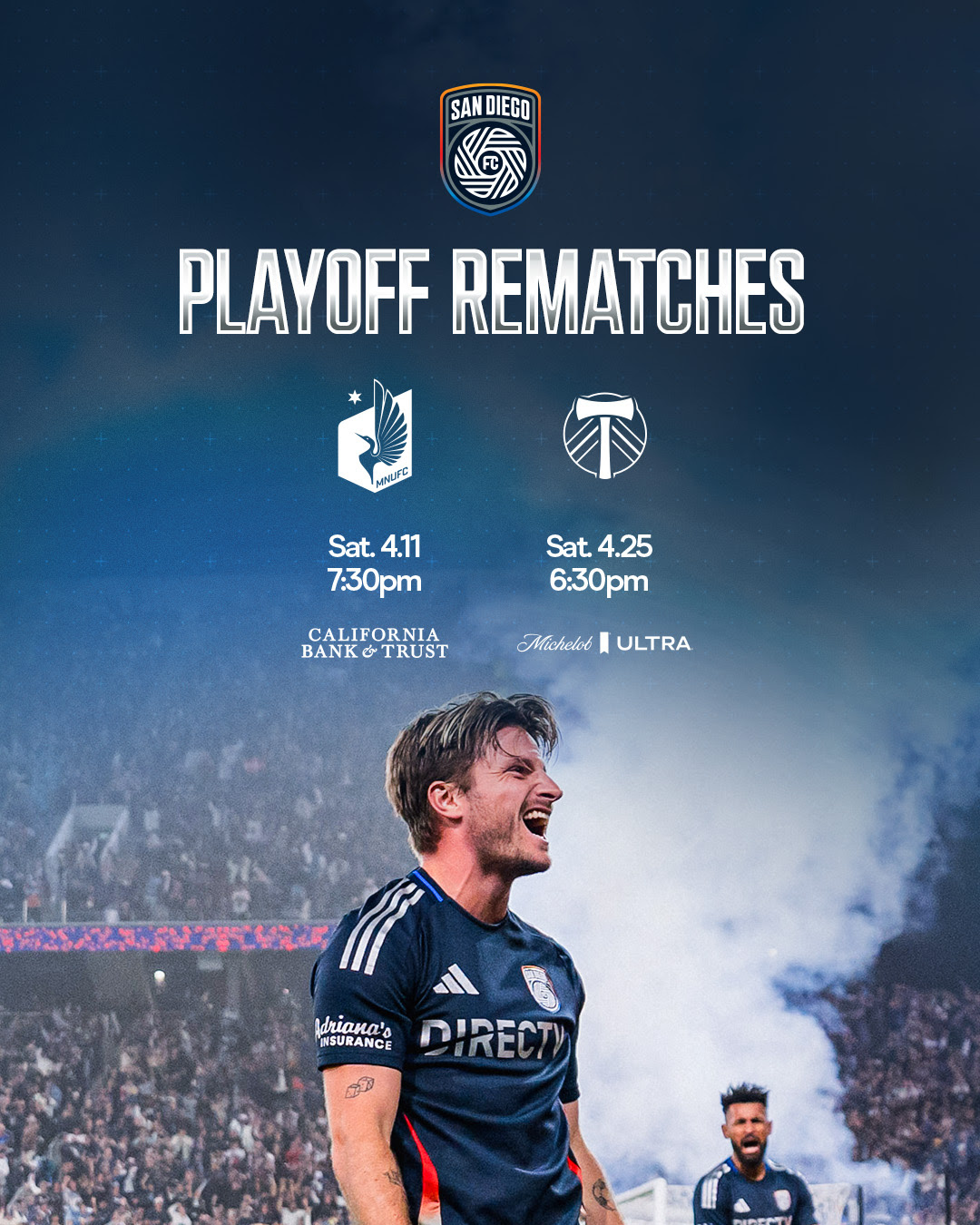 April’s forecast is here and things are heating up. We’re serving up back-to-back Playoff rematches at Snapdragon Stadium! Join us when we host James Rodriguez and Minnesota United FC on Saturday, April 11 and Kristoffer Velde and the Portland Timbers on Saturday, August 25.