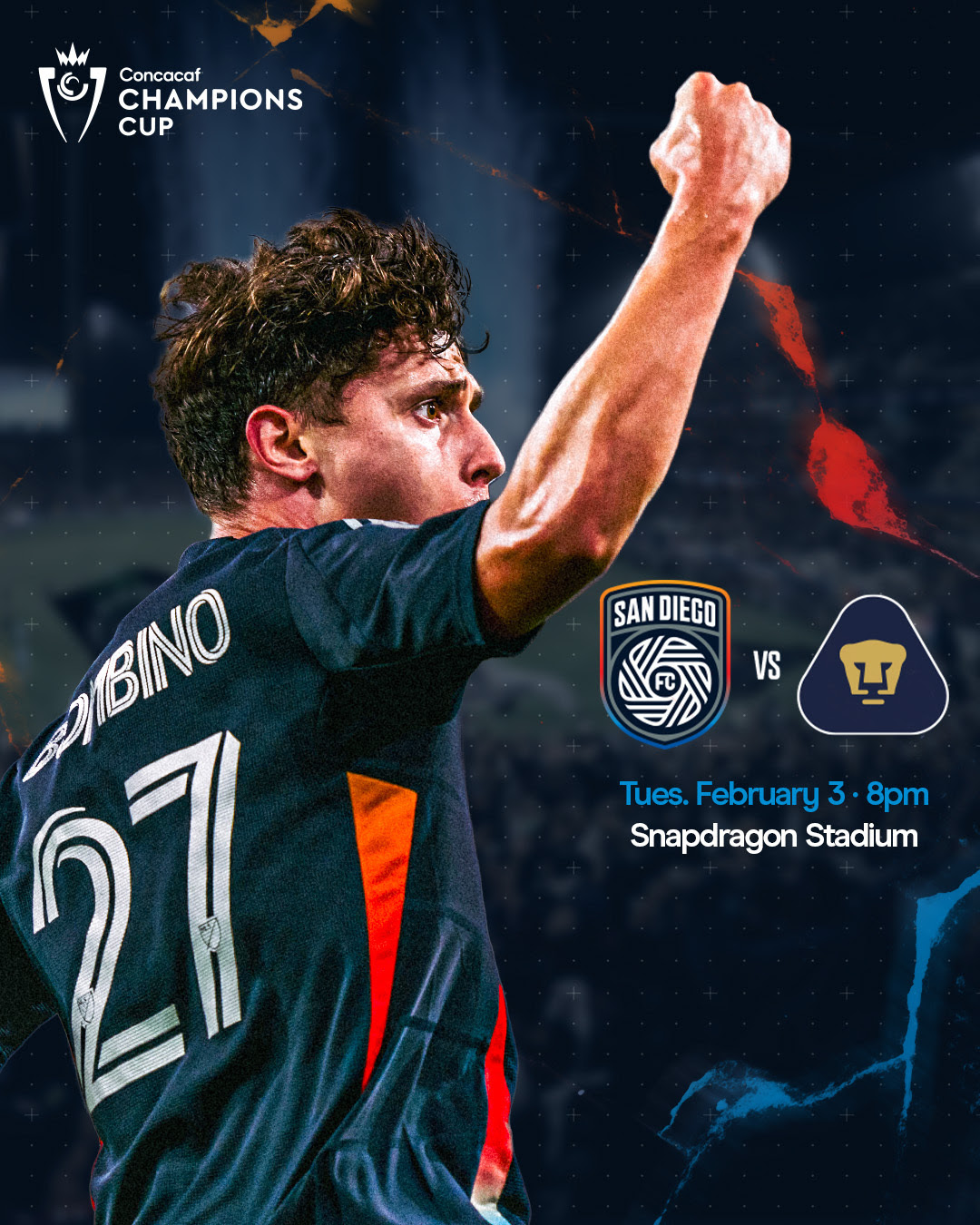 We’re. So. Back. San Diego FC kicks off on Tuesday, Feb. 3, marking our historic 2026 Concacaf Champions Cup debut against Liga MX giant, Pumas UNAM, right here at Snapdragon Stadium.