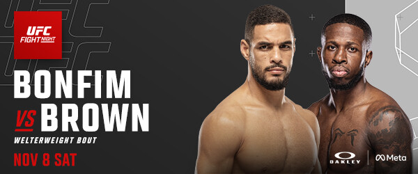 UFC FIGHT NIGHT®: BONFIM vs. BROWN takes place Saturday, November 8 in Las Vegas and will be available on ESPN+ (English and Spanish). The prelims will air at 1 p.m. PT / 4 p.m. ET, followed by the main card airing at 4 p.m. PT / 7 p.m. ET.